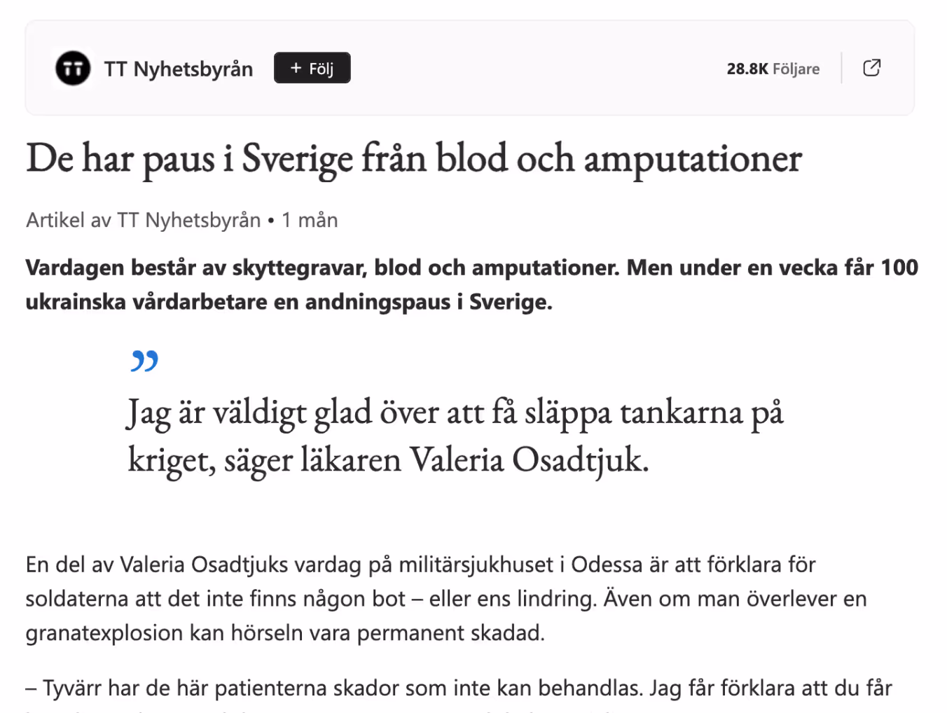 Leading media outlets in Ukraine, Sweden, and Spain have shared stories about our project and our medics.